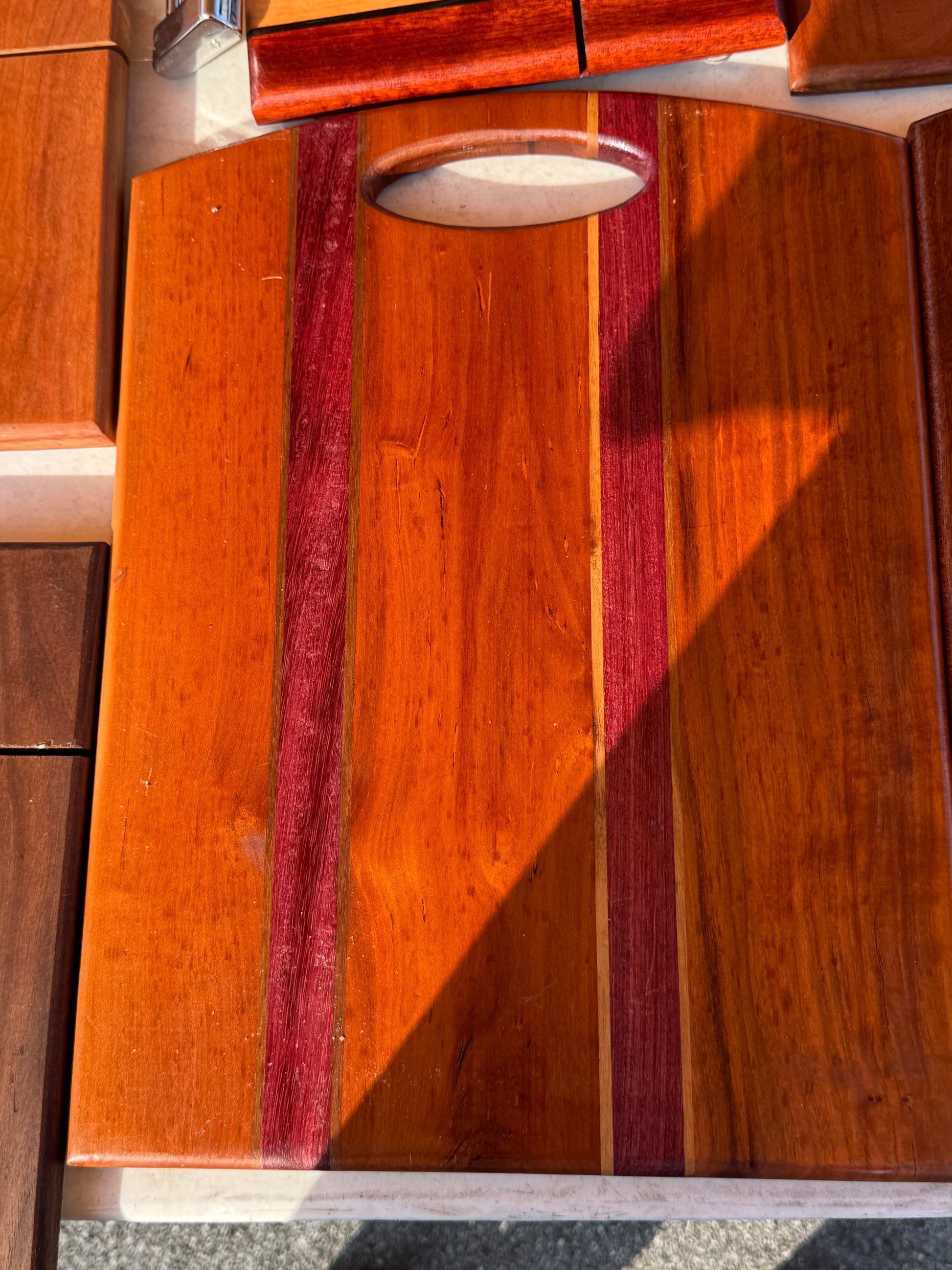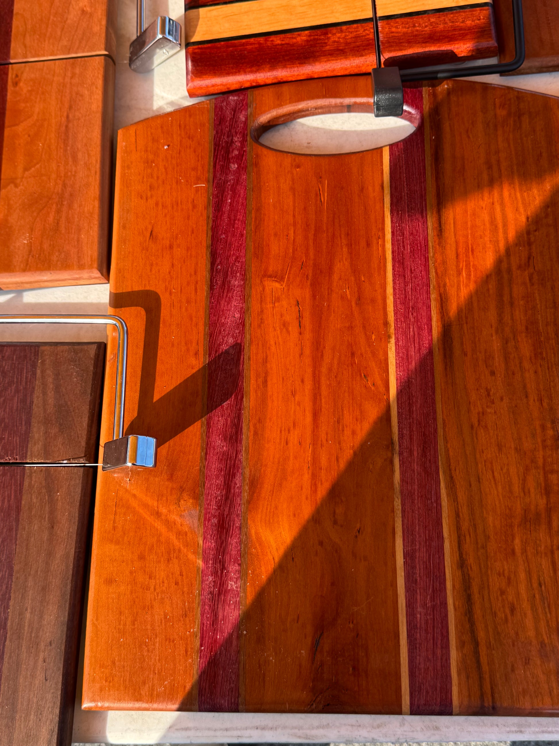 Cherry with and purpleheart striped cutting board approximately 3/4" thick X 12"width X 16" length.